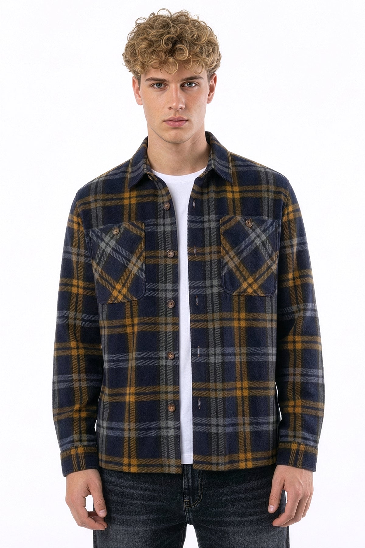 Elevate your layering game with this bold plaid shacket in rich red, navy, olive, and mustard tones. Designed as the ultimate transitional piece, it bridges the gap between lightweight shirt and protective jacket—delivering warmth without bulk and style without compromise.